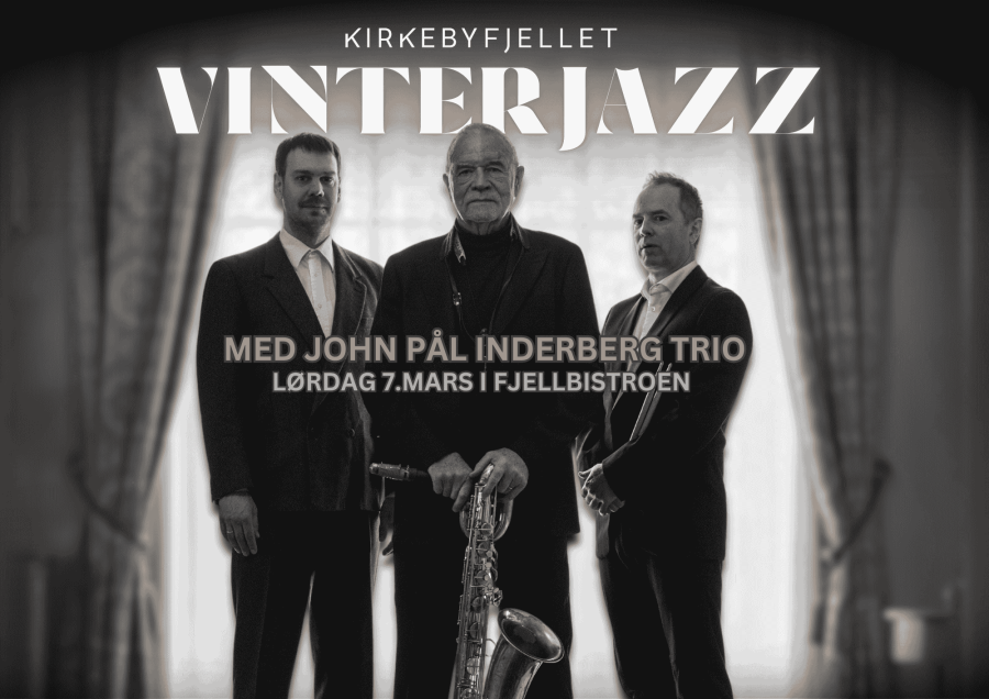Velkommen til VINTERJAZZ med John Pål Inderberg Trio lørdag 7.mars! ”Trioen har et bein planta på hver side av Atlanteren, med et ønske om å forene nordiske folketoner og afroamerikansk jazz. Det er vellykket.»(.) - Espen Løkeland-Stai, Dagsavisen John Pål Inderberg er en bauta i norsk jazz - og med seg har han Håkon Mjåset Johansen på trommer, og Trygve Waldemar Fiske på bass. Kirkebyfjellet disker opp velkomponerte retter som passer settingen, og serveres som 3-retters delemeny - før trioen inntar scenen. Du kan velge mellom: - Kun konsertbillett - Konsert og middag For mer info og kjøp av billetter, se HER Hjertelig velkommen til en herlig vinterkveld i Fjellbistroen - med god mat og fantastisk musikk!