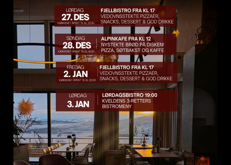 KJÆRE GJEST; ET OPPHOLD PÅ KIRKEBYFJELLET FORHÅNDSBESTILLES - MEN VÅR FJELLBISTRO ER FREDAGSÅPEN, OG VI ARRANGERER ULIKE TEMAKVELDER ÅRET RUNDT.